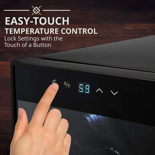15" Wine Cooler - 28 Bottle Capacity, Built-in/Freestanding with Double Glass Door & Safety Lock