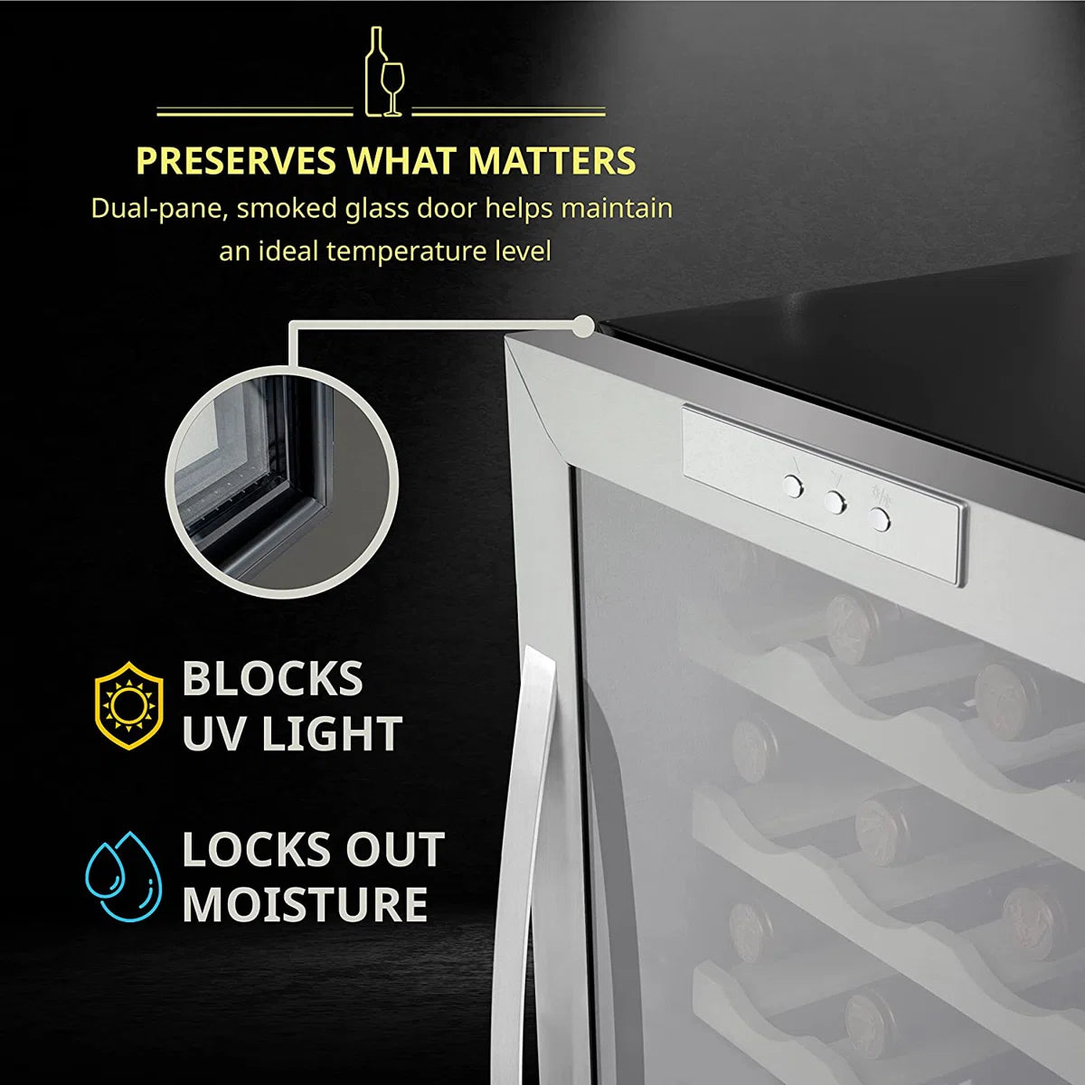 - UV-RESISTANT DOUBLE-PANED THERMOPANE GLASS - A double-paned glass door not only keeps the interior insulated but also protects your collection from harmful UV light that can damage the tannins and overall flavor of your wine.